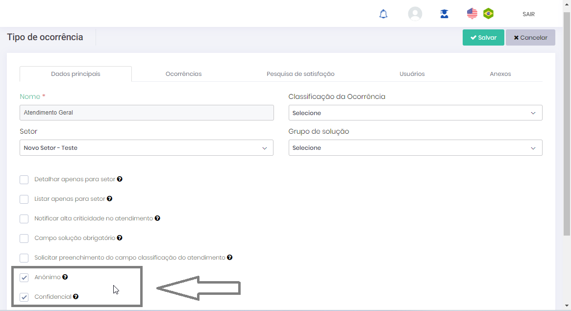 • Tipo de ocorrência