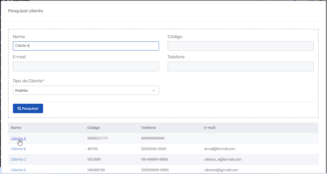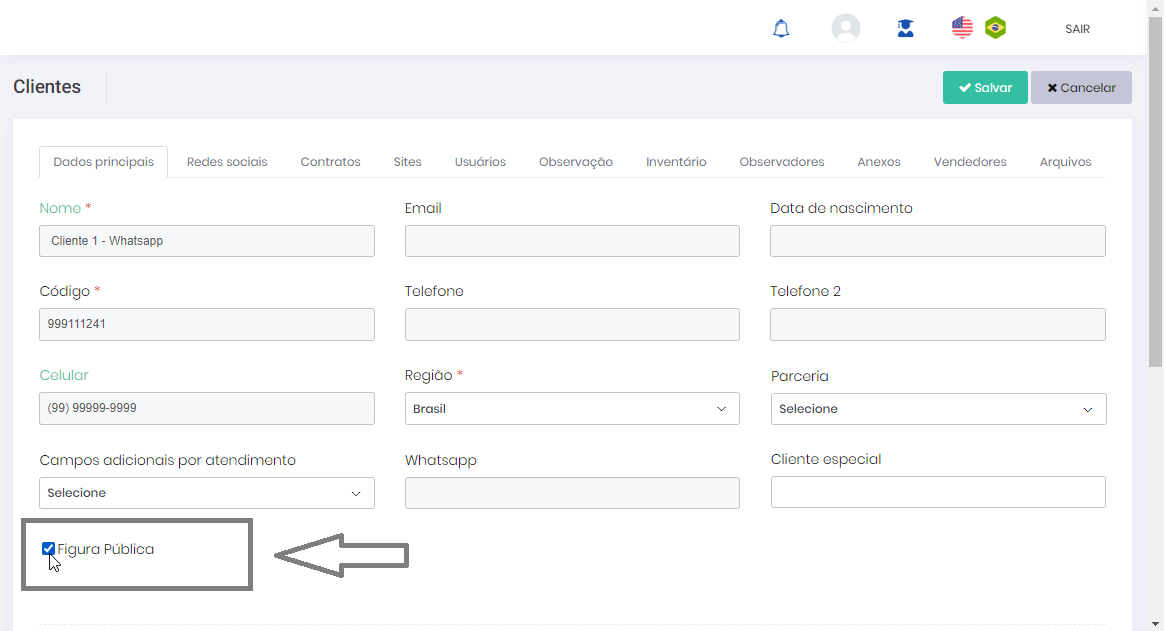 • Habilitar seleção de tipo de cliente