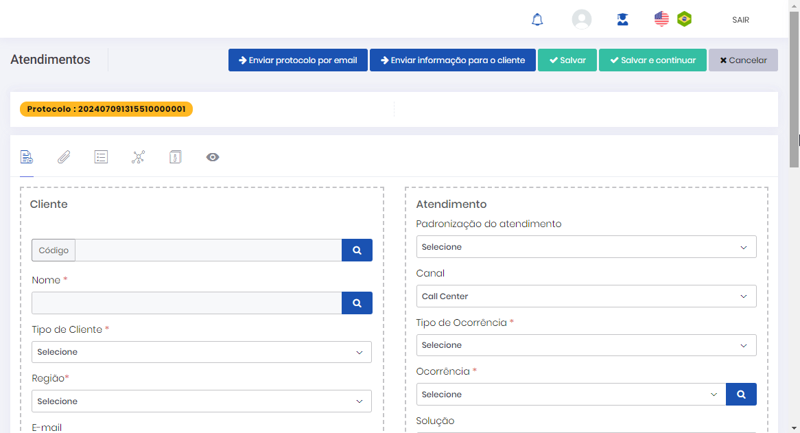 • Tela de Atendimento