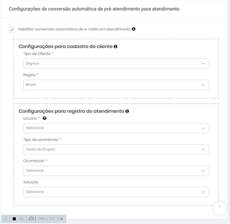 Conversão Automática no canal de E-mail e Distribuição Automática de Atendimentos Estimated reading: 6 minutes 467 views No Citrus.cx, o canal de E-mail possui como padrão o recurso do Pré-Atendimento (LemonDesk > Pré-Atendimento) que é utilizado para receber solicitações de atendimento através do E-mail e do Formulário Web e funciona como um formato de triagem, antes desse atendimento ser convertido e associado ao cadastro e na Jornada do Cliente.Para atender operações que possuem alta demanda de recebimento de fluxos de e-mails, adicionamos uma nova configuração opcional para que todos os atendimentos recebidos através das caixas de e-mails configuradas, já sejam convertidos de forma automática e aparece na listagem geral de Atendimentos (LemonDesk > Atendimentos).Para utilizar este recurso, você precisa ter um Canal de E-mail integrado ou Configurar a integração de um novo. Habilitar conversão automática de Atendimento via canal de E-mail O primeiro passo é na tela de Configuração de integração do canal de atendimento.Acesse o menu AdministraçãoPesquise por Integração Canal de AtendimentoClique em +Novo para incluir uma nova integraçãoClique em Salvar e ContinuarSerão exibidos outros campos, preencha as demais informações cadastrais que forem necessárias para a integração. Para habilitar a conversão em e-mails já integrados, localize alguma integração do tipo E-mail que já esteja cadastrado e clique para realizar a edição. Em seguida, siga os passos a seguir: 1. Selecione a opção Habilitar conversão automática de e-mails em atendimento 2. Note que serão exibidos alguns campos para a configuração: 3. Na aba Configurações para cadastro do cliente, selecione o Tipo de Cliente e a Região que serão vinculadas a um novo cliente que for cadastrado após a conversão do atendimento. 4. Na aba Configurações para registro do atendimento, serão exibidas as seguintes opções para preenchimento obrigatório:– Usuário: O usuário selecionado será associado como criador padrão para todos os atendimentos recebidos através do endereço e-mail configurado.– Tipo de Ocorrência: A opção selecionada, será associada para os atendimentos recebidos através do endereço e-mail configurado.– Ocorrência: A opção selecionada, será associada para os atendimentos recebidos através do endereço e-mail configurado. Os Tipos de Ocorrência e Ocorrência exibidos nos campos para configuração seguirão a regra de associação ao setor configurado para o canal de e-mail. 5. O campo Solução, não obrigatório, deve ser utilizado caso deseje que o atendimento recebido já possua uma Solução associada que inicie um fluxo interno de etapas no atendimento. 6. A partir da versão 2.57.0, implementamos a funcionalidade de Distribuição Automática dos Protocolos recebidos para os usuários configurados. Com essa melhoria, não será mais necessário atribuir manualmente ou direcionar para que o atendente interaja no atendimento para ficar indicado como responsável, otimizando ainda mais o tempo do atendimento e produtividade das equipes. Nas Configurações para registro do atendimento, ao selecionar uma Ocorrência será exibida uma flag para Habilitar distribuição automática do responsável pelo atendimento: Em seguida, indique se a distribuição será feita entre os Usuários do Setor ou Grupo de Solução.Com essa opção, será feito uma distribuição automática de forma aleatória entre os usuários do Setor ou Grupo de Solução associado à Ocorrência. Então, ao selecionar a opção Habilitar distribuição automática do responsável pelo atendimento será exibida as opções para seleção: A partir da versão 2.69.0, a regra para a Distribuição de Protocolos convertidos automaticamente passa a ser realizada de forma igualitária entre os atendentes do Grupo de Solução ou Setor configurado. Veja um exemplo de como será realizada a distribuição automática dos protocolos de atendimento: Exemplo: Considere 4 protocolos de atendimentos que devem ser distribuídos entre 3 Usuários disponíveis:– Ana (ana.maria) já possui 5 atendimentos e está na sequência 2 na ordem de cadastro do usuário na plataforma. – João (joao.silva) já possui 3 atendimentos e está na sequência 1 na ordem de cadastro do usuário na plataforma. – Luis (luis.souza)já possui 2 atendimentos e está na sequência 3 na ordem de cadastro do usuário na plataforma. Protocolo 1: Será enviado para o atendente LuisProtocolo 2: Será enviado para o atendente JoãoProtocolo 3: Será enviado para o atendente LuisProtocolo 4: Será enviado para o atendente JoãoAo final da distribuição dos 4 atendimentos: Luis terá 4 atendimentos e o próximo atendimento será associado a eleJoão terá 5 atendimentos Ana terá 5 atendimentos IMPORTANTE:– Se no cadastro da Ocorrência não tiver um Grupo de Solução associado, serão considerados os usuários do Setor configurado na ocorrência.– Caso não exista Setor ou Grupo de Solução associado no cadastro da Ocorrência, será exibida uma mensagem orientando a realizar essa associação:– Será necessário ter o Grupo de Solução (Administração > LemonDesk > Grupo de Solução) previamente configurado, com uma Ocorrência (Administração > Configurações Gerais > Tipo de Ocorrência > aba Ocorrência) associada: 7. Após preencher todas as informações, clique em Salvar para finalizar e pronto. Os e-mails enviados para o remetente configurado na integração já serão convertidos e serão exibidos na listagem de atendimentos (LemonDesk > Atendimentos) no Citrus. O ideal é que cada e-mail que possua uma conversão automática habilitada, seja associado a um Tipo de Ocorrência e Ocorrência diferente para que na listagem dos Atendimentos (LemonDesk > Atendimentos), seja possível identificar e segmentar os atendimentos recebidos por cada endereço de e-mail configurado.É possível pr