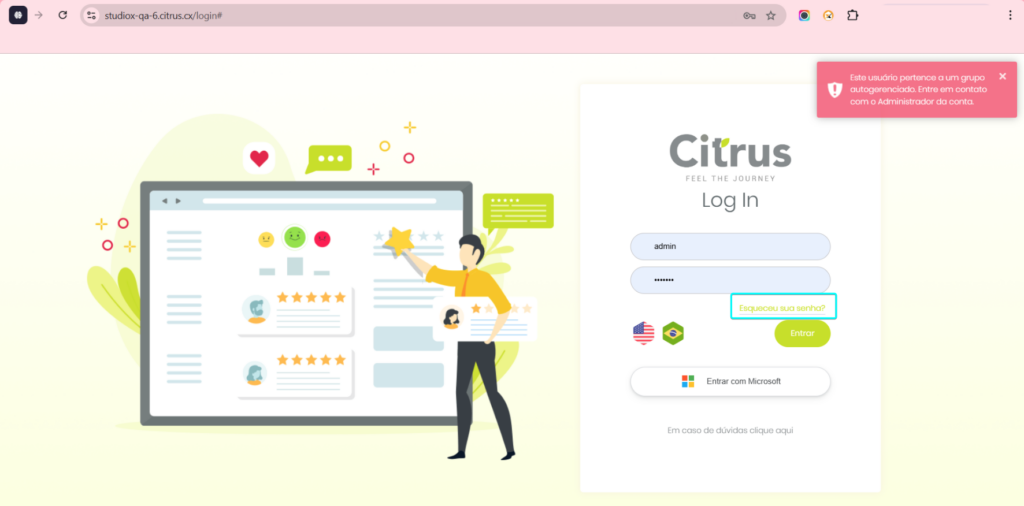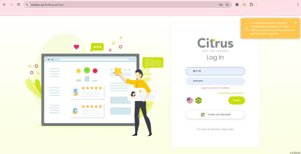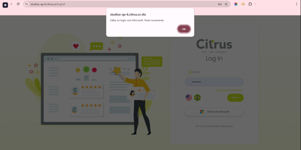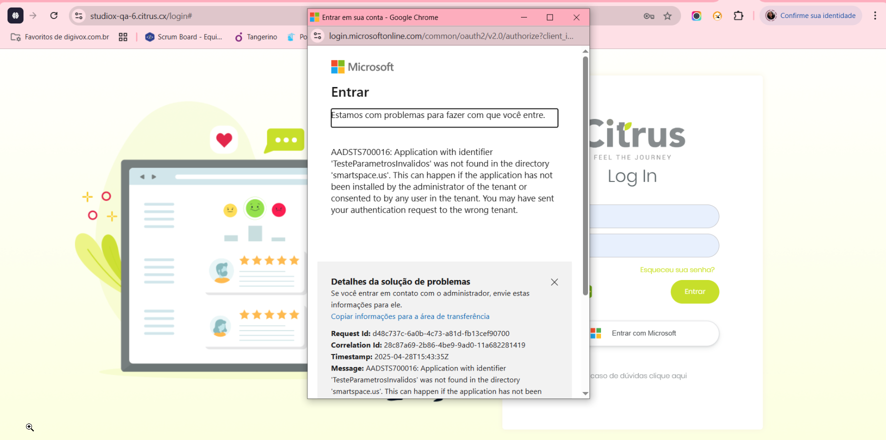 Login com conta corporativa Microsoft Estimated reading: 2 minutes 366 views 28/04/2025 Consulte a Tabela de Versionamento A autenticação na plataforma Citrus com credenciais de conta corporativa da Microsoft respeita algumas regras. Quando critérios de pré-requisitos não são cumpridos, alertas são mostrados na tela para notificar o usuário sobre o motivo de falha na tentativa de login. A seguir são apresentadas demonstrações sobre o funcionamento do login com conta da Microsoft: Tela de login Citrus com a opção Entrar com Microsoft A opção Entrar com Microsoft só é exibida na tela de login quando existe cadastro ativo do Provedor de Identidade no Citrus. Consulte Integração com Provedor de Identidade No momento que um usuário clicar no botão Entrar com Microsoft, o painel de login on–line da Microsoft será carregado na tela, e permitirá selecionar ou inserir o endereço de e-mail. Antes do acesso ao Citrus ser permitido, ou não, será realizada verificação para confirmar se o e-mail informado existe no Banco de Dados do Citrus. Caso este pré-requisito seja atendido, o login será concluído com sucesso. Se algum critério não for respeitado, alertas serão carregados na tela. Confira: 1. Fechar tela de login on-line da Microsoft Quando o usuário clicar em Entrar com Microsoft e fechar a tela de login on-line da Microsoft, verá a notificação de falha no login e será orientado a tentar novamente. 2. Conta de e-mail não encontrada Se a conta não for encontrada, o alerta de “e-mail não cadastrado no sistema” será carregado na tela. Recuperação de senha com conta Microsoft Quando um usuário de ambiente que utiliza Microsoft como Provedor de Identidade não lembrar suas credenciais de acesso poderá clicar em “Esqueceu sua senha?” na tela de login. Ao fazer isso, uma mensagem na tela informará que precisa entrar em contato com o Administrador da conta Microsoft na sua organização. Confira também Autenticação de e-mail Microsoft Office 365 × Clique nas imagens desta página para vê-las em tela cheia. Se preferir, recolha o menu da lateral esquerda da página para uma melhor visualização. Tagged:Acessar Citrus com Provedor de IdentidadeAcesso com MicrosoftAcesso com Provedor de IdentidadeAcesso Microsoft CorporativoAutenticação Citrus com Provedor de IdentidadeAutenticação com MicrosoftAutenticação com Provedor de IdentidadeAutenticação Corporativa MicrosoftAutenticação MicrosoftComo entrar com conta corporativa MicrosoftE-mail MicrosoftGuia de Integração Microsoft Entra IDGuia Integração com Provedor de IdentidadeGuia Login com Conta MicrosoftIntegração com ProvedoresLogin com MicrosoftLogin com Provedor de IdentidadeLogin Conta Corporativa MicrosoftLogin Microsoft Azure ADLogin Microsoft CorporativoLogin Microsoft EmpresaMicrosoftMicrosoft AuthenticationMicrosoft AzureProvedor de identidadeProvedor de Identidade MicrosoftUsuário com Provedor de Identidade