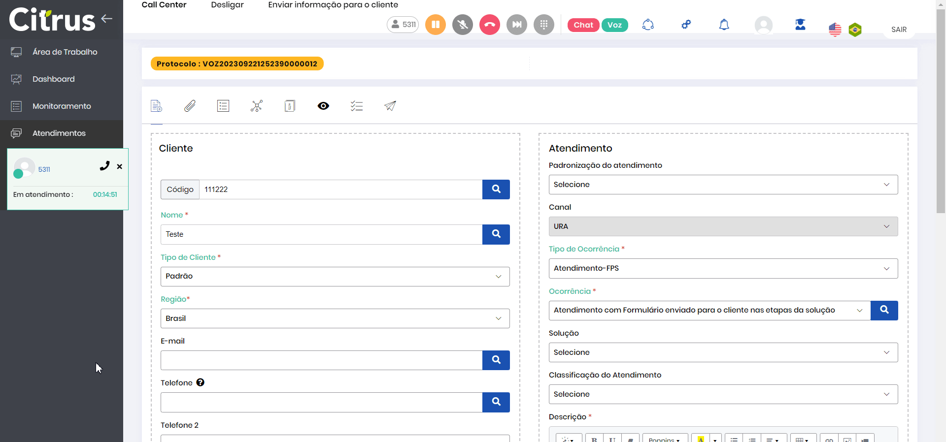Transferência de Chamada de Voz Estimated reading: 3 minutes 446 views A funcionalidade de Transferência de Chamada de Voz, disponível na tela do Atendente (Menu Principal > Atendente), permite o direcionamento de um atendimento em curso para outro agente/atendente logado em filas de Voz na plataforma e disponível para receber chamadas.A transferência pode ser bastante útil nos casos em que um atendimento precise ser tratado por outro colaborador ou especialista e, ainda, em casos excepcionais em que o primeiro atendente fique indisponível ou necessite de pausa. Com as melhorias implementadas na versão 2.83.0 da solução, todos os dados do card de atendimento (Protocolo, dados do cliente e da classificação do atendimento) passaram a ser encaminhados com a chamada, contribuindo para redução do tempo de atendimento, elevando a experiência do cliente, que não precisará repetir as informações disponibilizadas no início do atendimento. Pré-requisitos Para utilizar a funcionalidade de Transferência de Chamada de Voz, é necessário atender aos seguintes critérios:Ter usuário com Perfil de Atendente;Estar logado em uma Fila de atendimento de Voz e disponível para receber atendimentos;Ter como destinatário outro atendente também disponível para atendimento (logado no ramal de destino e que não esteja em pausa). Realizar Transferência de Chamada de Voz Confira abaixo o passo a passo de como é realizada uma Transferência de Chamada de Voz.1. Quando o Atendente 1, logado em uma Fila de Voz, atender uma chamada ou aceitar um card de Voz, o formulário de registro de atendimento será automaticamente aberto e um número de protocolo será gerado.2. Caso deseje transferir o atendimento em curso para outro colaborador/usuário, mesmo já tendo preenchido alguns campos do formulário, o Atendente 1 deverá clicar no botão de Transferir () ligação.3. Após isso, ele deverá digitar o número do ramal ou fila de destino disponível para atendimento e pressionar o botão de Ligar (). *Enquanto o Atendente 1 estiver realizando a transferência para o Atendente 2, a chamada do cliente em atendimento ficará em espera.4. Em seguida, um card de atendimento de Voz será recebido pelo Atendente 2, logado na fila ou ramal de destino, que deverá aceitá-lo, clicando em Aceitar ou no botão de Atender () ligação.5. Depois disso, o Atendente 2 visualizará o formulário de cadastro do atendimento transferido onde constará o número de protocolo gerado anteriormente e os dados dos campos preenchidos pelo Atendente 1. *Todas as informações já inseridas no formulário de cadastro do atendimento serão exibidas para o atendente que receber a chamada transferida. Tabela de Versionamento Versão Última Atualização 2.83.0 13/09/2023 Tagged:AgenteAgentesAtendenteAtendentesAtendimentoAtendimentosCitrusLemonDeskTransferênciaTransferência de Chamada de VozTransferência de VozVoz