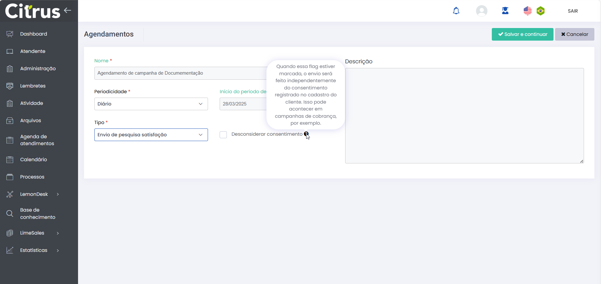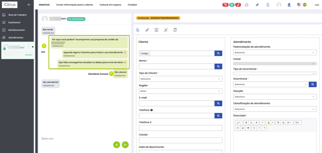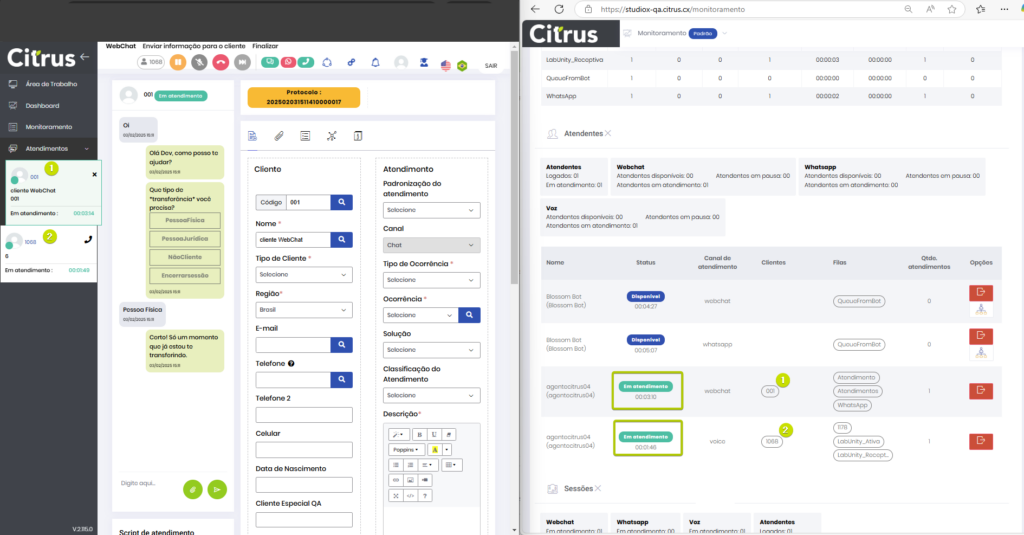 Versão 2.115.0 Estimated reading: 11 minutes 155 views 06/03/2025 Nesta versão foram implementadas a consulta a outras áreas por e-mail antes de responder clientes e a listagem de atendimentos por setor e para os responsáveis por etapas de outros setores.Também foram realizados vários ajustes para Atendimentos, em Agendamento de Campanhas, e na exibição de dados na tela de Monitoramento. NOVIDADES Atendimentos: Atendente poderá consultar outras áreas do Contact Center por e-mail antes de responder cliente O Atendente poderá marcar a caixa de seleção de “Encaminhamento da demanda por e-mail“, na seção de Comentários do atendimento, para esclarecer dúvidas com outras áreas do Contact Center antes de responder o cliente. Ao selecionar a opção, um bloco de Lembrete será exibido, exigindo que o Atendente selecione em quanto “Tempo” o sistema deve emitir um lembrete sobre este comentário (em minutos, horas ou dias), e o “Motivo”. As mensagens podem conter texto e anexo e todas ficarão registradas nos Comentários do atendimento como histórico, identificando Remetente e Destinatário. O funcionamento do recurso respeitará os seguintes critérios: O e-mail pode ser encaminhado para um ou para múltiplos destinatários. O(s) endereço(s) de e-mail que devem receber a mensagem podem ser preenchidos manualmente ou pela busca na lista de Destinatários de E-mails. As respostas recebidas para um e-mail ficarão agrupadas junto dele nos comentários do atendimento e identificarão Remetente e Destinatário. O Atendente pode enviar quantos e-mails forem necessários, com assuntos diferentes, para áreas distintas. O lembrete não altera o status do atendimento. Ele permanecerá como “Em Atendimento” até ser “Finalizado”. O lembrete chegará para o Atendente por e-mail. Além disso, ficará visível pelo ícone de sino no topo da tela ao abrir o atendimento, após o tempo que foi definido para ser exibido. Desaparecerá do sino quando o Atendente clicar em Abrir atendimento na notificação. Só então aparecerá nos comentários do atendimento. Se o Atendente marcar a opção “Visível para o cliente”, a resposta seguirá também para o cliente pelo canal que originou o atendimento, respeitando o canal mostrado no campo “Mídias”. Respostas para e-mails recebidas após o atendimento ter sido “Finalizado” serão registradas no histórico de comentários, sem alterar o status do atendimento. E-mail recebido por destinatário de setor interno do Contact Center, enviado por Atendente através dos comentários no atendimento. Lembrete recebido pelo Atendente por e-mail, conforme configurado no atendimento. Administração | Atendimentos: Inserida configuração para exibir atendimentos por Setor e para responsáveis por etapas A opção “Listar atendimentos por Setor e Responsáveis” foi adicionada à tela de Configurações de atendimento (Administração > LemonDesk > Configurações de atendimento). Quando ela for habilitada pelo Administrador, a tela de Atendimentos (LemonDesk > Atendimentos) listará apenas os atendimentos gerados para o Setor responsável pela prestação desses atendimentos. Se adicionado ao atendimento alguma etapa que seja responsabilidade de um Atendente (“B”) de outro Setor, este Atendente (“B”) conseguirá visualizar a Ocorrência na listagem de Atendimentos e acessá-la até que resolva a etapa atribuída a ele. A partir do momento que concluir a etapa designada para si, o Atendente do outro Setor (“B”) deixará de ver a Ocorrência na listagem de Atendimentos. Exemplo de Estilo com CSS DICA Por padrão, a opção de “Listar atendimentos por Setor e Responsáveis” é listada desabilitada em Administração > LemonDesk > Configurações de atendimento. É necessário marcar a opção para utilizar o recurso. As seguintes regras de acesso serão aplicadas quando a opção estiver habilitada: Qualquer usuário do Setor de origem pode acessar os atendimentos. Usuários do Setor indicados em uma etapa têm acesso aos atendimentos correspondentes. Usuários pertencentes ao Grupo de solução (Administração > LemoDesk > Gestão de atendimentos > Grupo de solução) configurado no Tipo de ocorrência (Administração > Configurações Gerais > Tipo de ocorrência) ou ocorrência podem acessar o atendimento, mesmo que não pertençam ao Setor de origem ou de destino. Quando o Tipo de ocorrência estiver com as opções (“Detalhar apenas para setor” e “Listar apenas para setor”) habilitadas, os atendimentos listados serão limitados aos Atendentes do Setor do Tipo de ocorrência. Essa regra predomina sobre as anteriores. CORREÇÕES Atendimentos: Resolvida falha na atualização automática das cores indicativas de Pausa e de login em filas de atendimento A cor amarela está sendo apresentada automaticamente, sem necessidade de atualizar a tela, indicando o status de Pausa no atendimento por filas de WebChat, WhatsApp e de Voz na tela de Atendimentos.A cor de fundo do ícone indicativo de login nas filas desses canais, ao Atendente sair de Pausa, também está respeitando a configuração definida em Administração > Configurações Gerais > Canais do atendimento > (campo) Cor do label. Atendimentos: Ajuste evitará que cliente só receba última mensagem enviada por bot após atendimento ser transferido A partir da correção, quando o atendimento por canal de chat (WhatsApp/WebChat) iniciar com um bot, todas as mensagens disparadas por ele serão recebidas pelo cliente antes do card ser transferido para uma fila com Atendente humano. Clique na imagem para ver em tela cheia. Atendimentos: Atendente receberá mensagens de cliente após ele ser transferido de atendimento com bot para atendimento humano Resolvida a falha que fazia com que as mensagens enviadas por cliente pelo WhatsApp, após ele ser transferido para um Atendente humano, fossem encaminhadas para o bot que iniciou o atendimento. Ajuste 