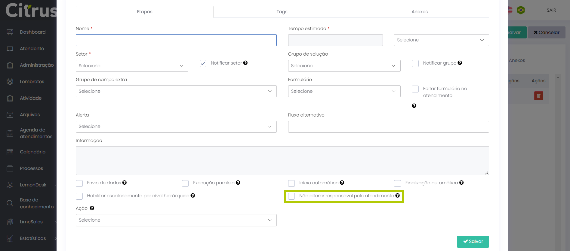Versão 2.83.0 Estimated reading: 7 minutes 328 views NOVIDADES Atendente: Implementado recurso de Conferência de Voz entre atendentes O canal de Voz da plataforma recebeu melhorias e, a partir de agora, será possível realizar conferências de Voz entre atendentes logados na plataforma. O recurso permite uma colaboração multissetorial em tempo real entre atendentes, supervisores e colaboradores (inclusive de outros Setores), acelerando a resolução de demandas complexas, reduzindo erros, aumentando a eficiência operacional e melhorando o nível de satisfação do cliente.Desse modo, quando o Atendente 1 estiver em uma chamada de Voz ativa com um Cliente e realizar uma transferência assistida para outro atendente ou ramal disponível para atendimento, se essa chamada de transferência for recepcionada pelo Atendente 2, o botão de Conferência () ficará disponível para ser utilizado pelo Atendente 1. Caso o Atendente 1 clique no botão de Conferência, serão exibidos botões para confirmar () ou cancelar () a conferência. Se a conferência for confirmada, será iniciada uma chamada de Voz entre o Atendente 1, o Cliente em atendimento e o Atendente 2. Saiba mais sobre o recurso de Conferência de Voz. Atendente: Dados do atendimento serão encaminhados na Transferência de Voz O recurso de transferência de chamadas de Voz na plataforma recebeu melhorias e, agora, quando um atendimento em curso for transferido para uma fila ou um ramal de outro atendente, os dados do atendimento (protocolo, dados do cliente e da classificação do atendimento) já preenchidos serão encaminhados na conclusão da transferência. Desse modo, quando o Atendente 1 (de origem), que está em uma ligação de atendimento, clicar no botão Transferir do menu de discagem, os dados do atendimento em curso serão exibidos para o Atendente 2 (de destino), para quem a chamada for transferida.Anteriormente, o Atendente recebia no card de atendimento o número de origem do ramal de transferência. A melhoria implementada garante a integridade e a preservação das informações, e contribui na redução do tempo de atendimento, elevando a experiência do cliente que não precisará repetir as informações disponibilizadas no início do atendimento. Conheça mais um pouco sobre a funcionalidade de Transferência de Chamada de Voz. Fluxo de Soluções: Etapas poderão ser atribuídas a outro responsável sem que o responsável pelo atendimento seja alterado A plataforma passa a permitir que, durante o cadastro e configuração de Etapas do Fluxo de Soluções dos atendimentos (Administração > Configurações Gerais > Tipo de ocorrência > +Novo > (aba) Ocorrências > (aba) Soluções > (editar) Solução > (aba) Etapas), seja possível manter o responsável pelo atendimento, alterando apenas o responsável pela Etapa. A melhoria tem como objetivo flexibilizar o gerenciamento e a atribuição de responsabilidades dentro dos processos, sem afetar substancialmente a equipe de atendimento.Na sua implementação, foi adicionada à tela de cadastro de Etapas das Soluções a flag “Não alterar responsável pelo atendimento” para que, no momento de iniciar a respectiva Etapa, o usuário responsável pelo atendimento seja mantido. Se a flag “Não alterar responsável pelo atendimento” estiver habilitada para uma Etapa, o usuário que iniciar essa Etapa ficará responsável apenas por ela, não havendo alteração do responsável pelo atendimento, que permanece o mesmo. Contudo, se a opção estiver desabilitada, qualquer usuário que iniciar essa Etapa será designado também como responsável pelo atendimento.Ainda no Fluxo de Soluções, passou a ser possível para o Atendente alterar o responsável de uma Etapa diretamente pela aba de “Solução” na tela de cadastro de Atendimentos do módulo LemonDesk, estando essa ação limitada para usuários de um mesmo Setor ou Grupo de solução.Essa melhoria, por sua vez, contribui para agilizar o processo de atribuição de responsabilidades e garantir que somente membros de um setor/grupo específico de colaboradores tenham essa possibilidade de ação.Para a implementação do novo recurso, foi adicionado o botão de Alterar responsável () ao quadro do fluxo de Etapas da aba “Solução” que, ao ser pressionado por um usuário, permitirá que ele seja designado como responsável pela Etapa. IMPORTANTE: O botão de Alterar responsável só será exibido e a ação só poderá ser executada se:A Etapa a ser alterada já tiver sido iniciada;O usuário que deseja realizar a alteração não for o responsável pela Etapa e for do mesmo Setor ou Grupo de solução do atual atendente responsável.Saiba mais sobre as Regras para Configuração de Etapas das Soluções em Atendimentos. CORREÇÕES Atendente: Transferência de ligação entre atendentes só será concluída após a inserção de um número de telefone de destino A transferência de ligação entre atendentes dentro da plataforma está sendo efetuada normalmente desde que um número de telefone ou ramal destinatário seja inserido no respectivo campo antes de realizar a ação.Foi corrigido o cenário em que, ao tentar realizar uma transferência de ligação sem digitar um número de telefone de destino, a plataforma permitia que o processo fosse concluído, fazendo com que o botão de ligar deixasse de ficar visível para o usuário.Com a nova validação implementada, quando um usuário logado em uma fila de Voz tentar transferir um atendimento, esse processo só será processado e concluído mediante a discagem de um número específico. Atendente: Preenchimento de campos do Cliente na tela de registro de Atendimentos está ocorrendo normalmente O preenchimento dos campos de dados do Cliente no formulário da tela de cadastro de Atendimentos está funcionando normalmente e os valores de todos campos já preenchidos estão sendo exibidos corretamente.Foi resolvido o cenário em que, quando o us