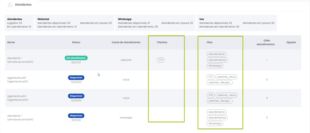 Versão 2.109.2 Estimated reading: 2 minutes 313 views 04/10/2024 CORREÇÃO Monitoramento: Ajuste evitará inconsistências na apresentação de dados na aba Detalhes As informações de Atendentes e Sessões apresentadas na aba Detalhes da tela de Monitoramento foram ajustadas para corrigir algumas inconsistências, observadas após a mudança no layout da aba.As melhorias aplicadas são: Atendentes → Os dados exibidos nas colunas “Clientes” e “Filas” foram reorganizados para evitar que, ao Atendente estar logado em várias filas, os nomes das filas se sobreponham e misturem-se com a identificação do cliente (na coluna “Clientes”).Agora, quando a identificação do cliente possuir mais de 15 dígitos (caracteres), será exibida com reticências (…), sendo mostrada por completo ao passar o mouse sobre ela. Além disso, a identificação será separada do tempo de atendimento por traço. As informações das colunas “Clientes” e “Filas” não estão mais se sobrepondo quando o Atendente estiver logado em várias filas. Ao passar o mouse sobre a identificação de cliente (coluna “Clientes”), é exibida a informação completa sobre ele e o tempo de atendimento. → Resolvida a falha na classificação do card Atedentes, que contabilizava interações pelo WebChat com bot como “Em atendimento”.Agora, aparecerão “Em atendimento” apenas os realizados por Atendente humano.A melhoria evita diferenciações entre o número de Atendentes “Logados” e a quantidade exibida “Em Atendimento”. Clique na imagem para ver em tela cheia. Na imagem é possível verificar que um mesmo Atendente está logado em dois canais. Na contagem de “Logados” ele é considerado apenas uma vez. Quando um mesmo Atendente estiver logado em mais de um canal e/ou fila, a contagem de Atendentes logados vai considerar o número de Atendentes e não de canais/filas. Sessões Foi normalizado o comportamento do botão para alterar o “Tempo para atualização do chat”. Assim, ao clicar em Visualizar chat na coluna “Opções” e, a seguir, arrastar o botão, será possível definir o tempo de atualização entre 5 e 20 segundos.Com isso, foi corrigido o cenário em que o intervalo permanecia fixo em 5 segundos. Confira também a Release notes da versão 2.109.0 Consulte o Guia de Monitoramento Tagged:Aba DetalhesAtendenteAtendentesAtendimentoAtendimentosCanais de AtendimentoCards de AtendimentoDetalhesMonitoramentoMonitorar AtendentesMonitorar AtendimentosRelease notesRelease Notes CitrusSessõesSessões de AtendimentosSupervisorTela de Monitoramento