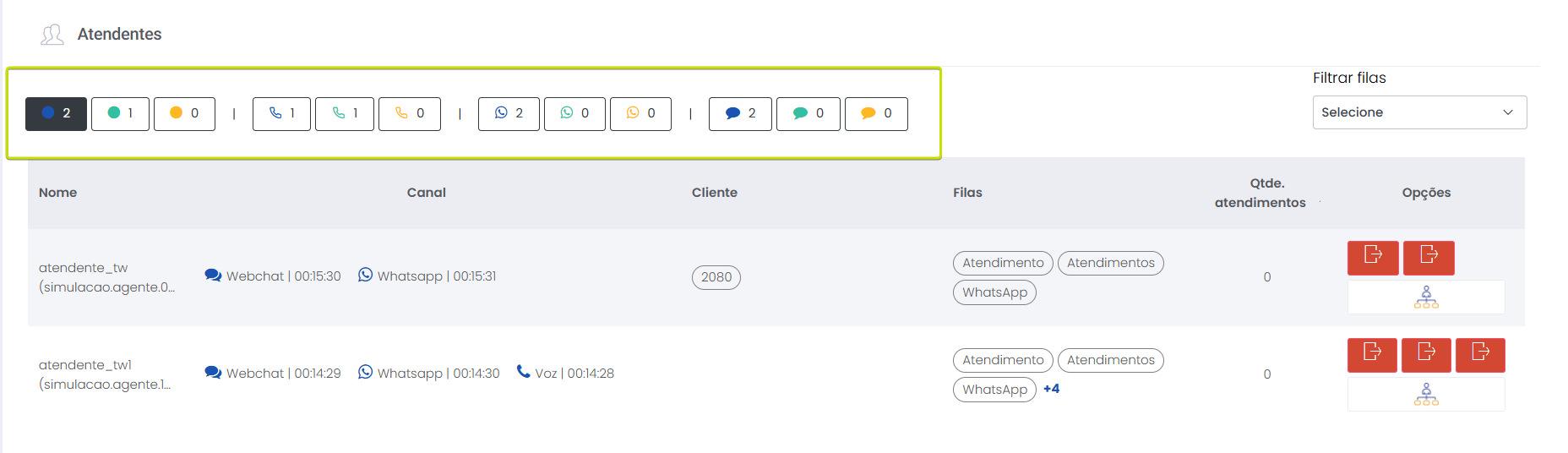 Versão 2.109.29 Estimated reading: 3 minutes 131 views 01/04/2025 NOVIDADE Monitoramento: A tela da aba Detalhes mudou para apresentar dados de forma dinâmica A tela da aba Detalhes do Monitoramento Citrus foi atualizada para que o Supervisor possa verificar informações de Atendentes e dados de atendimentos de forma mais intuitiva. O que mudou: Atendentes – Ícones de filtragem foram adicionados no topo da seção para identificar status de Atendentes logados nos canais de atendimento (Voz, WhatsApp, WebChat). É possível verificar a quantidade total de Atendentes disponíveis, em atendimento e em pausa. Além de visualizar o número de Atendentes por status em cada canal. – No topo direito da seção foi inserido um seletor para Filtrar filas. Por meio dele o Supervisor pode escolher qual fila associada ao Grupo de monitoramento deseja acompanhar. – Agora, cada linha da seção representa um Atendente. Assim, o monitoramento pode ser feito combinando os filtros do topo da seção para obter resultados correspondentes a um operador específico. Por exemplo: No topo da seção selecionar o ícone do canal de voz correspondente ao status Em atendimento, em Filtrar filas selecionar uma na qual o Atendente “A” está associado para prestar atendimento e observar a linha correspondente às informações desse Atendente.Caso ele esteja Em atendimento, o tempo em que se encontra neste status será exibido ao lado da identificação do canal. Além disso, o botão da opção Logout do agente será mostrado na linha correspondente ao Atendente para cada canal em que estiver logado no momento da supervisão. Então, se o Atendente estiver logado em todos os canais, o Supervisor poderá aplicar a ação individualmente para cada canal. Sessões O topo de Sessões também passa a apresentar ícones de filtragem que podem ser aplicados de forma individual ou combinada pelo Supervisor, para monitorar a situação de atendimentos das filas dos canais de Voz, WhatsApp e WebChat. Foram adicionados os seguintes filtros: – Total geral de sessões com status Em atendimento e Na fila (referente a todos os canais de atendimento). – Total de sessões com status Em atendimento e Na fila para cada canal de atendimento (Voz, WhatsApp, WebChat). – Total de sessões de atendimentos sendo feitos por operador humano e total de atendimentos sendo realizados por meio de bot. Consulte o Guia completo de Monitoramento Citrus × Clique nas imagens desta página para vê-las em tela cheia. Se preferir, recolha o menu da lateral esquerda da página para uma melhor visualização. Tagged:Aba DetalhesCanal de atendimentoCanal de VozCanal WebChatCanal WhatsAppFiltrar FilasGrupo de monitoramentoGuia de MonitoramentoÍcones de FiltroLogout do AtendenteMonitoramentoMonitoramento CitrusMonitoramento de SessõesMonitorar AtendentesMonitorar AtendimentosMonitorar Oferta de CardsRelease notesStatus do AtendenteSupervisorVersão 2.109.29