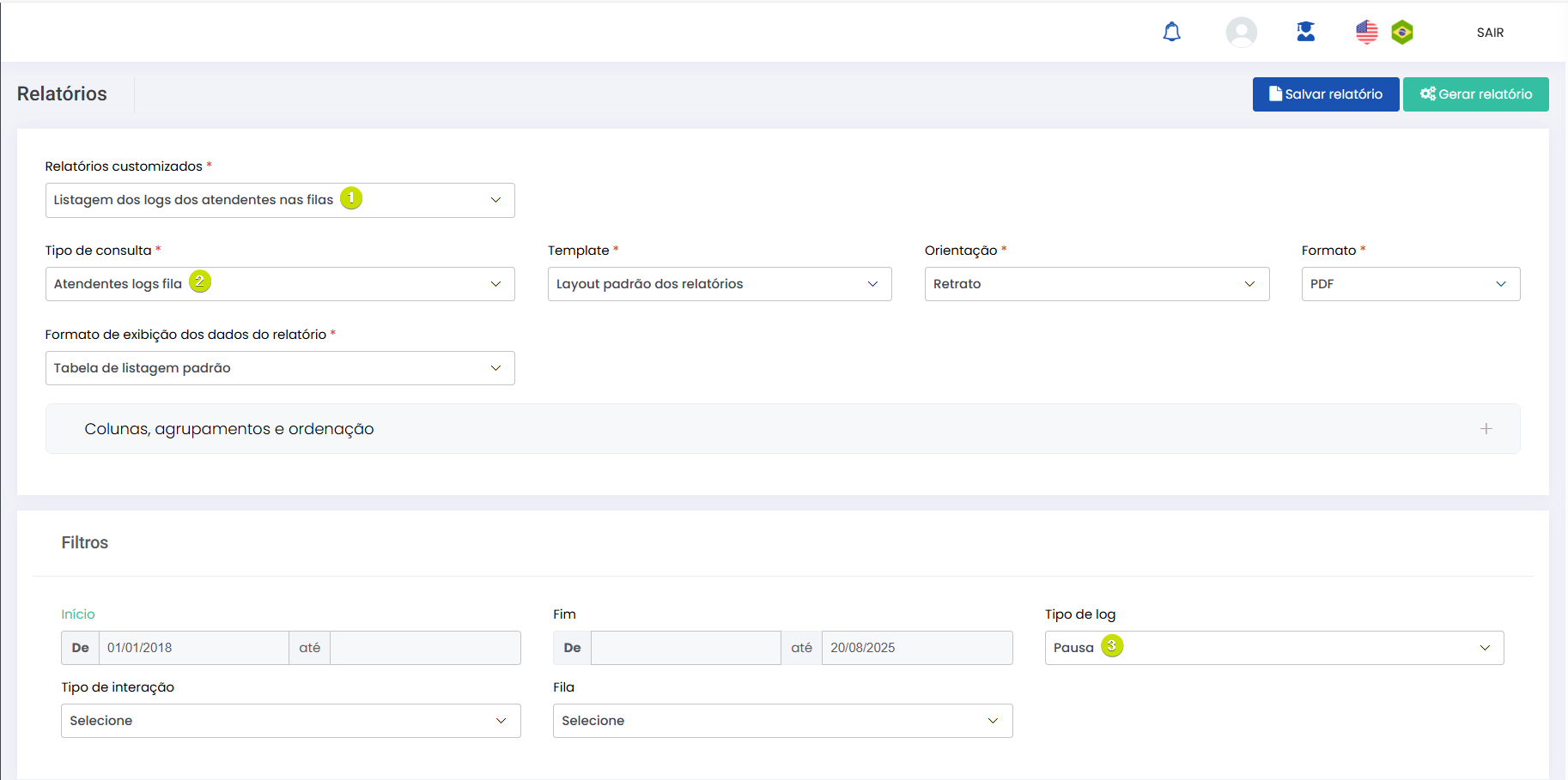 Versão 2.109.36 Estimated reading: 2 minutes 110 views 03/07/2025 CORREÇÕES Administração: Resolvida falha no registro de dados preenchidos em campos extras de “Atividades” diferentes, mas do mesmo tipo Quando os campos extras de atividades diferentes cadastradas no menu Administração > Configurações Gerais > Atividade forem preenchidos, os dados informados serão corretamente vinculados à atividade em que foram inseridos, e não ao Tipo de atividade (Administração > Configurações Gerais > Tipo de atividade). Caso exista mais de uma atividade configurada como do mesmo tipo, e que todas possuam campos extras, não acontecerão mais os cenários em que: Informações adicionadas aos campos extras de uma atividade apareciam preenchendo os campos extras de outra atividade. Ao atualizar dados dos campos extras que apareciam preenchidos, as informações originais eram sobrescritas. Confira como funcionam as Atividades e o Tipo de atividade Atendimentos: Chamada de voz será desligada ao Atendente fazer logout de fila de atendimento Normalizado o comportamento para atendimentos do canal de Voz (tela de Atendimentos), quando o Atendente faz logout de uma fila em que existe card em atendimento. Como esperado, a chamada em andamento será desligada ao logout da fila ser feito. Estatísticas: Relatório de “Listagem dos logs dos atendentes nas filas” traz exibição correta de início e fim de Pausa nos canais Voz e WebChat Ajuste realizado para que os horários de “Início” e “Fim” de Pausa de Atendentes em filas dos canais de Voz e WebChat sejam registrados corretamente, sem atrasos ou adiantamentos. O tratamento aplicado também deve garantir que os registros de entrada e saída de Pausa sejam os mesmos quando um canal possui várias filas de atendimento, já que a Pausa é automaticamente acionada para todas as filas associadas a um único canal. Assim, o Relatório de Listagem dos logs dos atendentes nas filas (Estatísticas > Relatórios), gerado a partir da consulta de “Atendentes logs fila”, volta a apresentar informações consistentes. Relatório Atendentes logs fila. Tagged:AdministraçãoAtendenteAtividadesCampos extrasCanal de VozCanal WebChatCards de AtendimentoChamada de VozConfiguração Consulta RelatóriosConfigurações GeraisConsulta de "Atendentes logs fila"Consulta RelatóriosEstatísticasInício e Fim de PausaListagem de LogsLogout da filaLogout Filas de AendimentoLogs de AtendentesPausa do AtendenteRelatóriosRelease notesTela de AtendimentosTempo de pausaTipo de AtividadeVersão 2.109.36