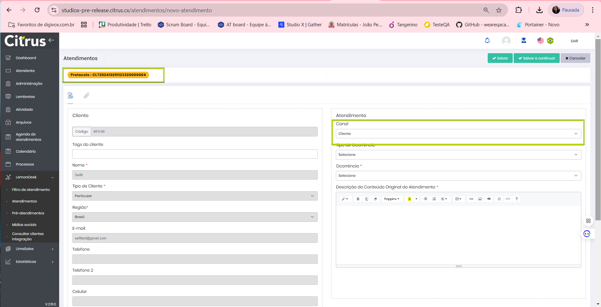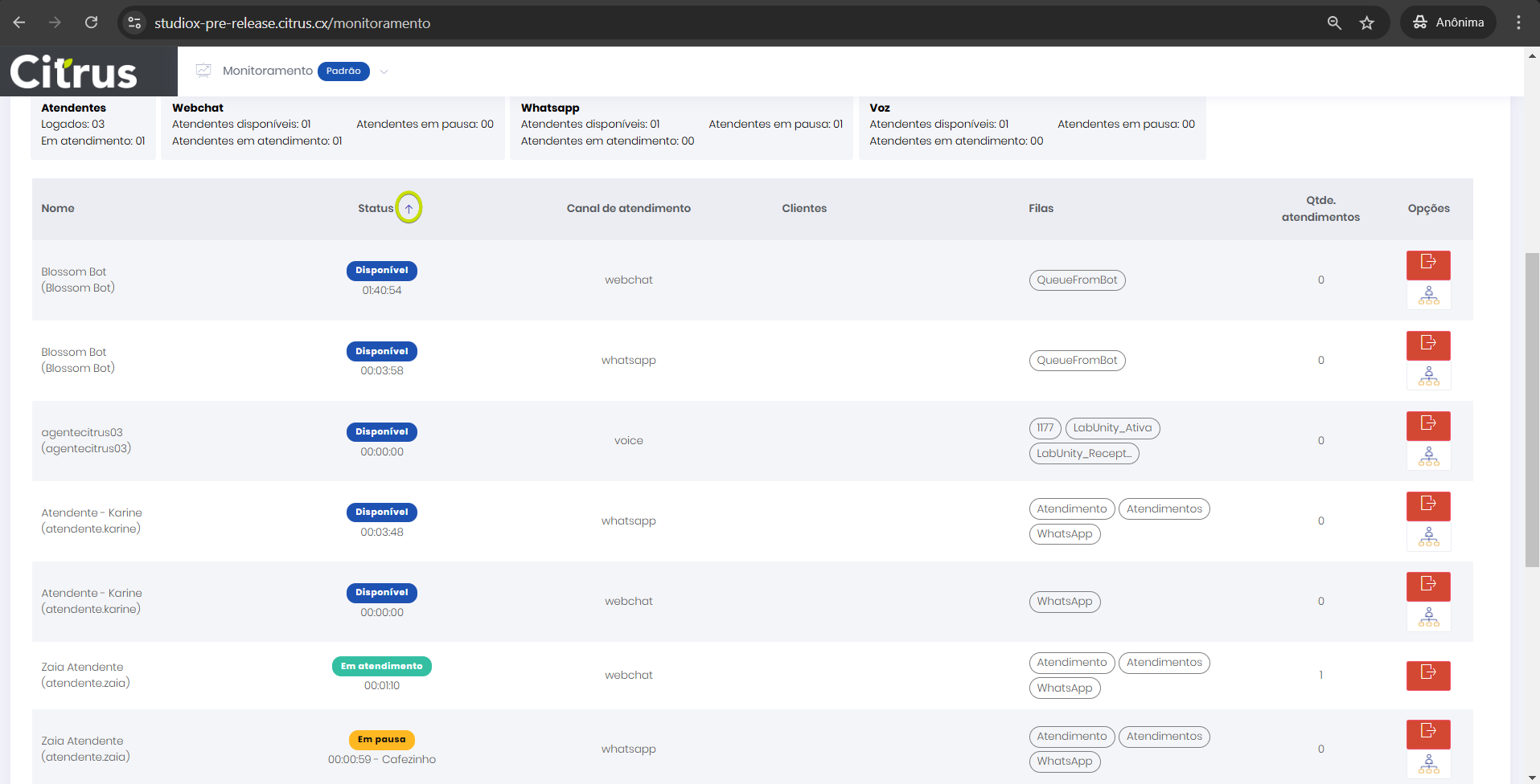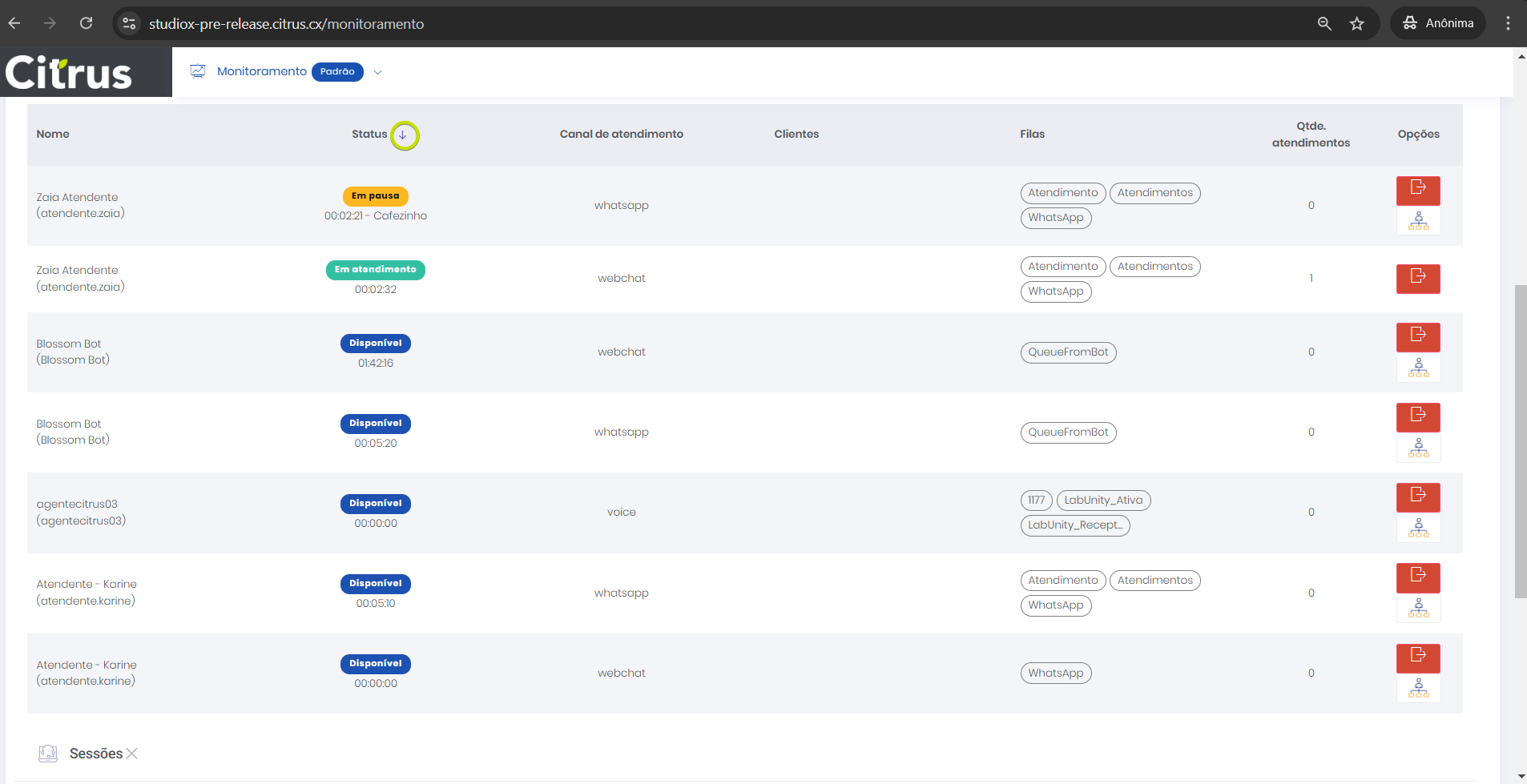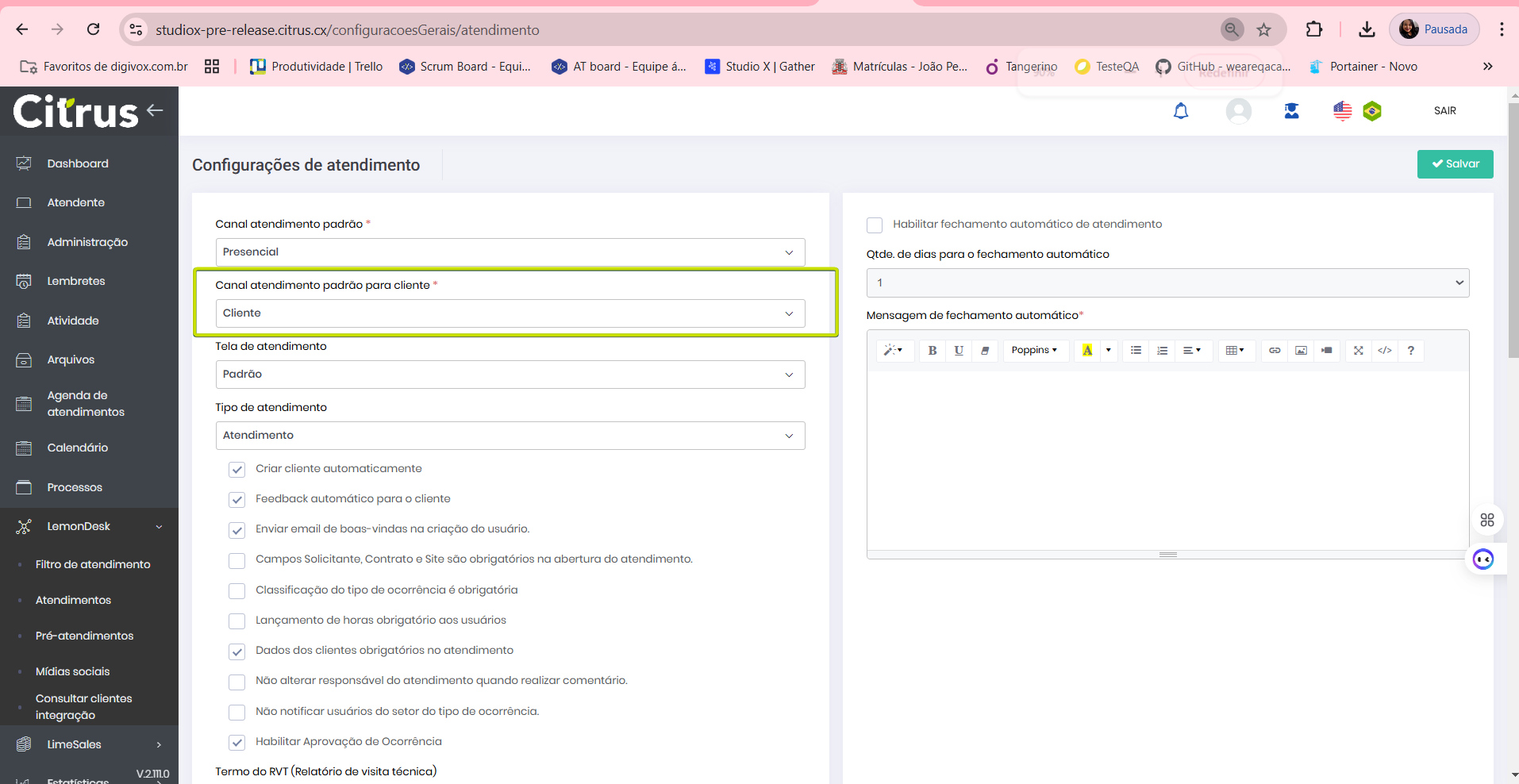 Versão 2.111.0 Estimated reading: 6 minutes 355 views 28/10/2024 NOVIDADE Monitoramento: Aplicadas atualizações de usabilidade para melhorar a experiência de usuário A interface da aba Detalhes da tela de Monitoramento (Estatísticas > Monitoramento > (aba) Detalhes) recebeu novos recursos de usabilidade.As melhorias devem otimizar a visualização de informações e mantê-las organizadas mesmo se a tela for atualizada. Enquanto monitora atendimentos, o Supervisor poderá recolher e expandir Dados de Filas, Atendentes e Sessões pressionando os ícones “x” e “+” inseridos ao lado do nome de cada seção da tela. Na seção Atendentes, a coluna “Status” vai exibir os tipos de status (Disponível, Em atendimento e Pausa). Mas, se o Supervisor alterar o ordenamento da Coluna pela seta de direção ao lado dela (ascendente ou escendente), e atualizar a tela de Monitoramento, a ordem de status de atendimentos permanecerá a mesma definida por ele manualmente antes de dar refresh. Clique na galeria para ver as imagens em tela cheia. Coluna “Status” com ordenamento ascendente, mostrando tipos de status em ordem alfabética. Coluna “Status” com ordenamento descendente aplicado manualmente pelo Supervisor, ao clicar na seta de direção ao lado dela. Essa ordem será mantida se o Supervisor atualizar a tela. DICA O Supervisor pode pressionar a seta de direção (ascendente/descendente) de qualquer coluna da seção Atendentes para redefinir a ordem de apresentação das informações. Sempre que fizer isso, e atualizar a tela, o último ordenamento escolhido será mantido. Consulte o Guia de Monitoramento CORREÇÕES Monitoramento: Removidas inconsistências de Sessões da aba Detalhes A aba Detalhes da tela de Monitoramento (Estatísticas > Monitoramento > (Selecionar grupo de monitoramento) > (aba) Detalhes) recebeu melhorias para eliminar inconsistências na apresentação de informações de Sessões. Para que os dados de atendimentos sejam exibidos de forma clara para o Supervisor, foram aplicados os seguintes ajustes na área de Sessões: Coluna “Opções”: Ao clicar na ação Visualizar chat, o pop-up da conversa será carregado para o Supervisor e no cabeçalho identificará: – O canal– Cliente: Somente para atendimento pelo WhatsApp.– Número do Protocolo do atendimento.– Data e horário– AtendenteColuna “Opções”: A disposição em que são carregadas na tela as opções de Transferir cliente de fila (apenas atendimentos com bot) e Visualizar chat (apenas atendimentos de WhatsApp e WebChat) foram ajustadas. Agora, ao clicar na coluna “Opções” do primeiro atendimento listado em Sessões, essas ações aparecerão alinhadas abaixo desse atendimento. Com isso, evita-se que a caixa de opções oculte parte das informações do primeiro atendimento da lista. DICA: O alinhamento abaixo do atendimento será mantido apenas para o primeiro da lista. Para os demais, o alinhamento aparecerá acima do Atendimento listado. Removida coluna “Código”: Em Sessões será exibida apenas a coluna “Cliente”, que só vai aparecer preenchida para atendimentos por WhatsApp ou canal de Voz. Nestes cenários, conterá o número do cliente. Clique na galeria para ver as imagens em tela cheia. Visualização de cabeçalho de chat pelo WhatsApp. Visualização de cabeçalho de conversa pelo WebChat. Disposição da caixa de ações do primeiro atendimento da lista de Sessões. Coluna “Cliente” exibirá informações de Atendimentos por Voz e WhatsApp. Consulte o Guia de Monitoramento LemonDesk: Atendente de Grupo de atendente sem canais visualizará todos os canais e tipos de ocorrência Todos os canais e tipos de ocorrência serão listados em formulário de atendimento aberto pelo menu LemonDesk > Atendimentos > +Novo, por Atendente de Grupo de atendente (Administração > Atendimentos > Grupo de atendente) sem canal adicionado. Foi resolvido o cenário em que Atendentes de Grupo de atendente (Administração > Atendimentos > Grupo de atendente), em que não existe Canal Associado, não via nenhum “Canal” ou “Tipo de Ocorrência”. Com o ajuste, esse perfil de Atendente poderá ver e selecionar a opção Desejada nos campos “Canal” e “Tipo de Ocorrência”, na seção Atendimento do formulário. O Atendente de Grupo de atendente sem canais consegue abrir um formulário de atendimento e selecionar “Canal” e “Tipo de Ocorrência”. Clique na imagem para ver em tela cheia. LemonDesk: Formulário de atendimento exibirá o canal configurado como padrão para o cliente e o código de Protocolo correspondente O campo “Canal”, de formulário de atendimento aberto manualmente pelo menu LemonDesk> Atendimentos > +Novo, exibirá o canal configurado como padrão para o cliente em Administração > LemonDesk > Configurações de atendimento. Assim, ao abrir o formulário, o campo “Canal” da seção Atendimento mostrará o canal definido nas Configurações de atendimento como o padrão. Com isso, não deve mais ocorrer a situação em que o canal apresentado era diferente do configurado.A partir da melhoria aplicada para que o canal padrão seja o exibido ao abrir o formulário de atendimento, também não deve mais ocorrer falha no número de Protocolo registrado para o tipo de canal. Ou seja, o formulário aberto será registrado com número de Protocolo do canal padrão e, se o Atendente selecionar outro canal, o número do Protocolo mudará para o do canal escolhido. Clique na galeria para ver as imagens em tela cheia. Exemplo de Configurações de atendimento com canal “Cliente”. Formulário de atendimento com a opção configurada refletida no campo “Canal”. Demonstração de atualização do número de Protocolo do formulário de atendimento, de acordo com o canal selecionado. Base de conhecimento: Supervisor poderá editar e salvar alterações mesmo sem ter permissão para “Aprovar artigo” Usuários com Perfil Sup